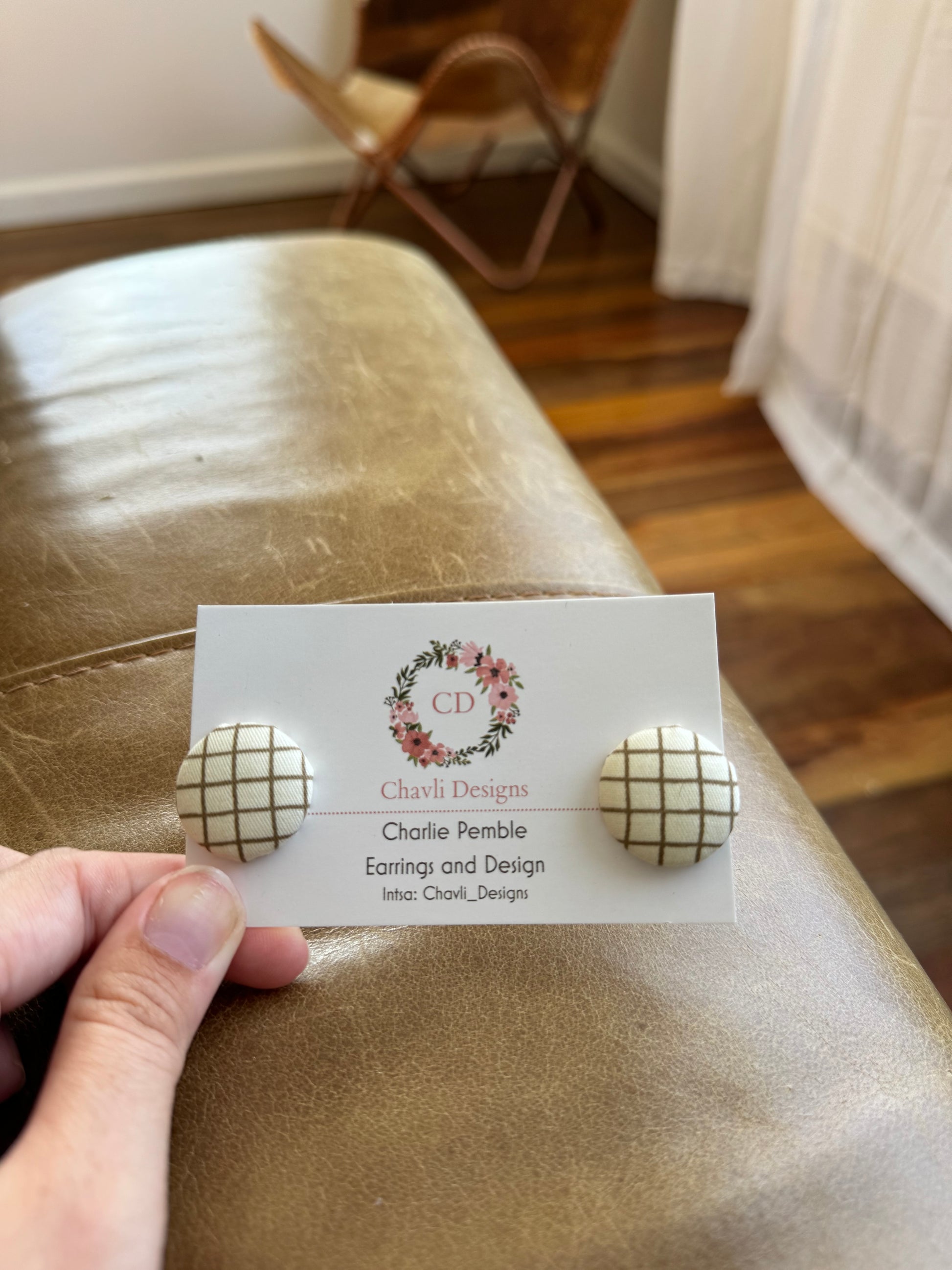 Fabric Beige and Brown Stripe Earring